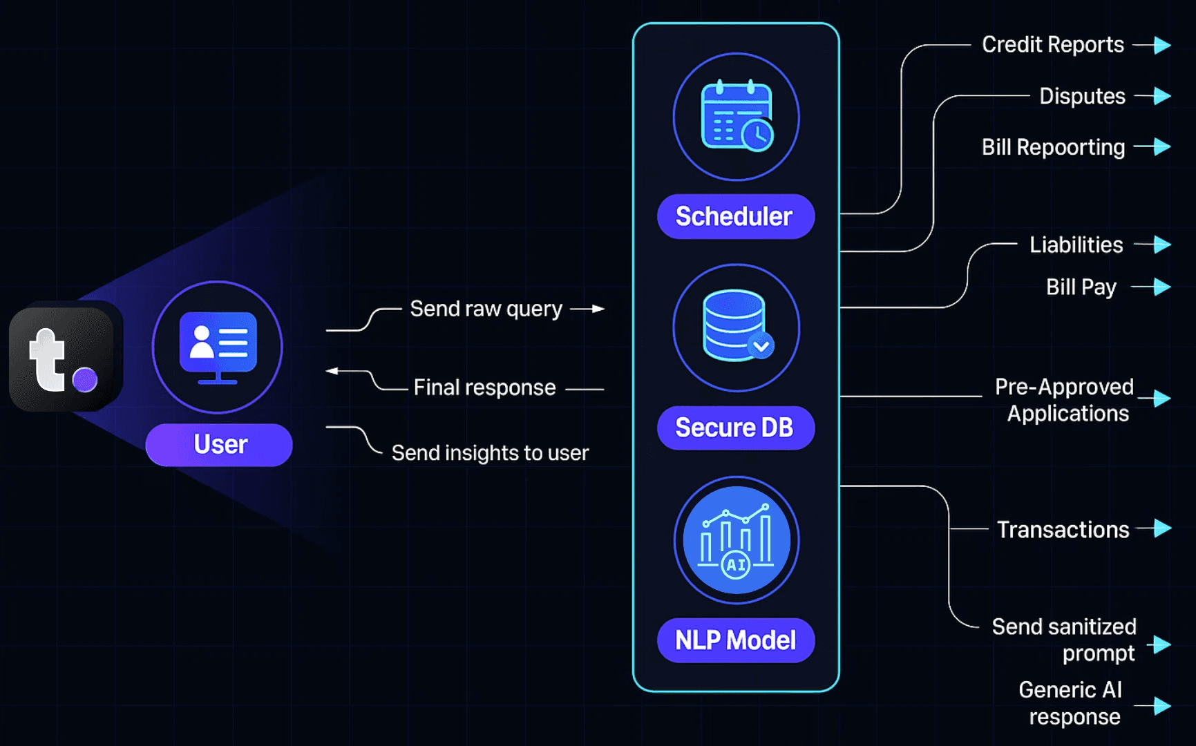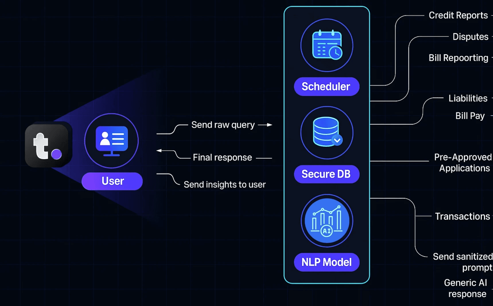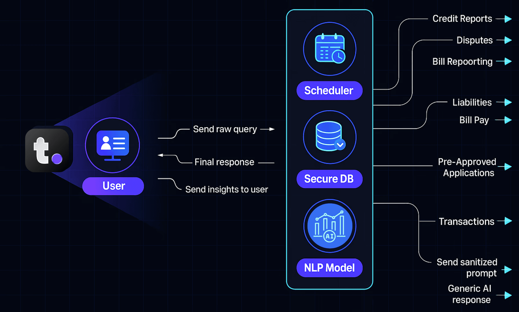 TomoCredit is not just as a marketplace, but as a private LLM–powered credit intelligence engine — one that learns from user data securely to optimize both access to capital and financial outcomes.
